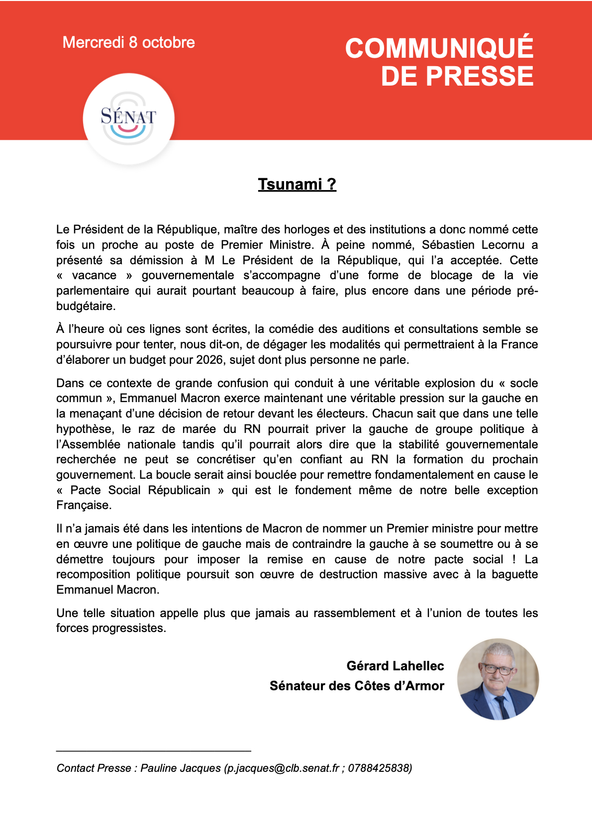 Mon communiqué sur le gouvernement Lecornu !