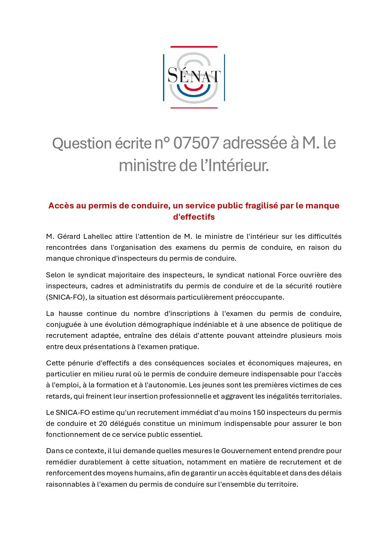J’ai souhaité interpeller le ministre de l’Intérieur sur les difficultés croissantes d’accès au permis de conduire, dues au manque chronique d’inspecteurs chargés de l’organisation des examens. !